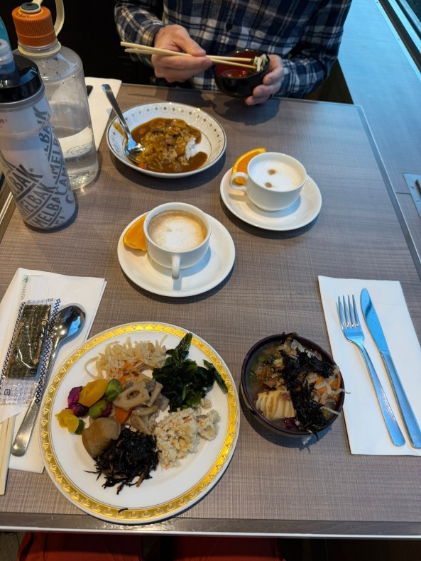 Day 2 kicked off with a delicious breakfast included in the ridiculously cheap hotel price (look at the spread!) then a casual little stroll to the airport to catch the express train into Tokyo. Honestly, Japan’s walking paths deserve their own fan club. Distances, arrows, instructions on how to be a functioning human in public—my Type A soul has never felt so seen.