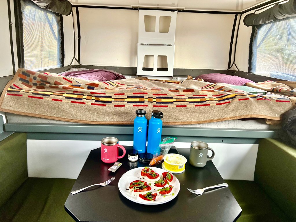 If you are like us and just not ready to pay for Starlink, we find our t-mobile with the Weboost we get reception in almost everywhere. A also nice for winter camping is this Southwest sherpa blanket it brightens up the space and is a nice snuggle for your bed. So youâre not fighting over it we like the 60×80 size and have twin Pendleton blankets with duvets on them.
